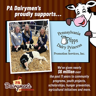 Over the past eleven years, the PA Dairymen have donated nearly $6 million to programs including The Calving Corner; agricultural and educational projects; initiatives and various scholarships; the Fill A Glass with Hope® fresh milk campaign for neighbors in need; the Choose PA Dairy consumer education and awareness campaign; Adopt a Cow elementary school program; educational farm visits for career development; Future Farmers of America (FFA) youth projects; the PA Farm Bureau Mobile Ag Education Lab that travels to schools; and the PA Dairy Princess and Promotion Program. Their philanthropic efforts build a brighter future for all Pennsylvanians.